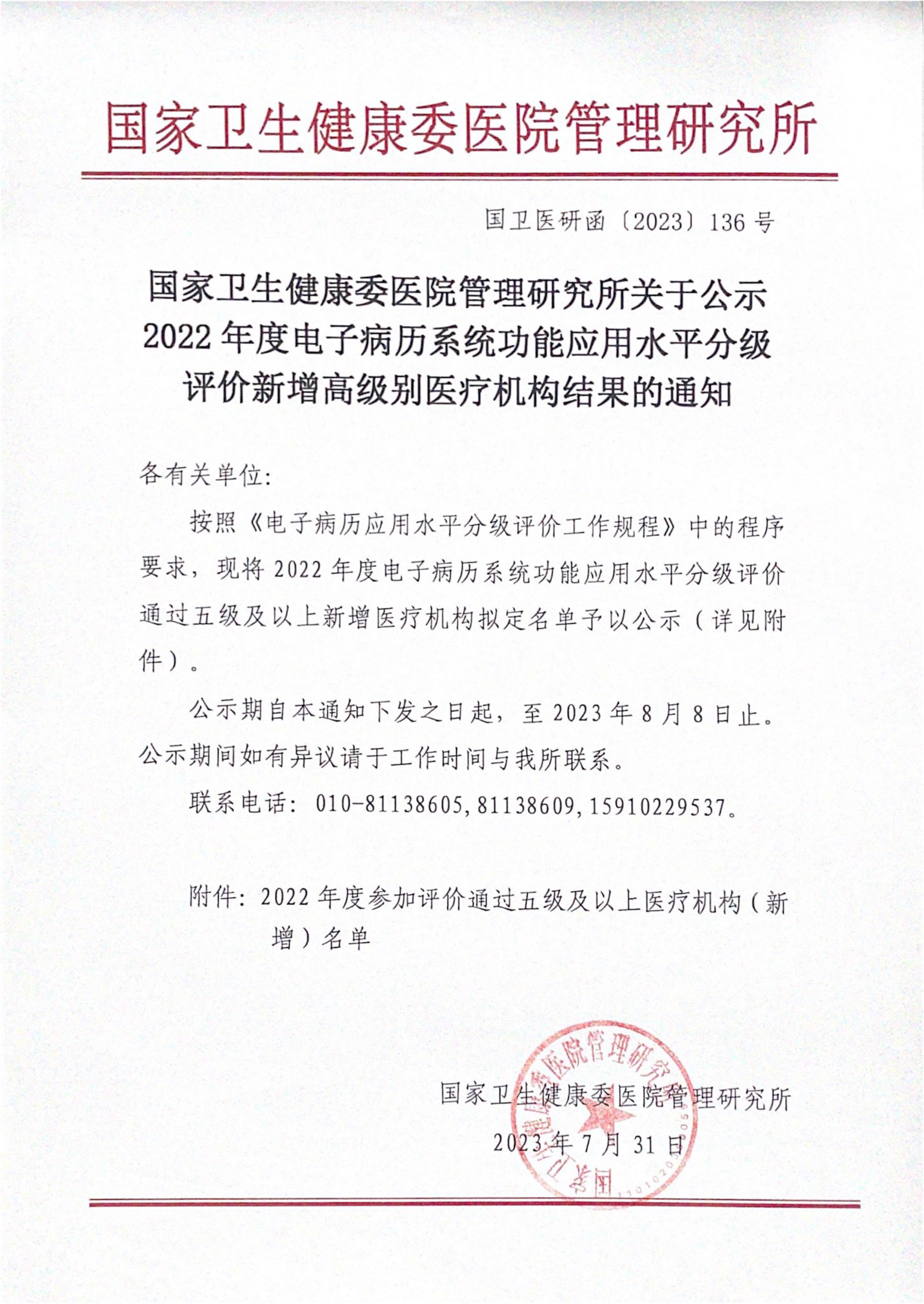 近日,國(guó)家衛(wèi)生健康委醫(yī)院管理研究所發(fā)布了《關(guān)于公示2022年度電子病歷系統(tǒng)功能應(yīng)用水平分級(jí)評(píng)價(jià)新增高級(jí)別醫(yī)療機(jī)構(gòu)的通知》。