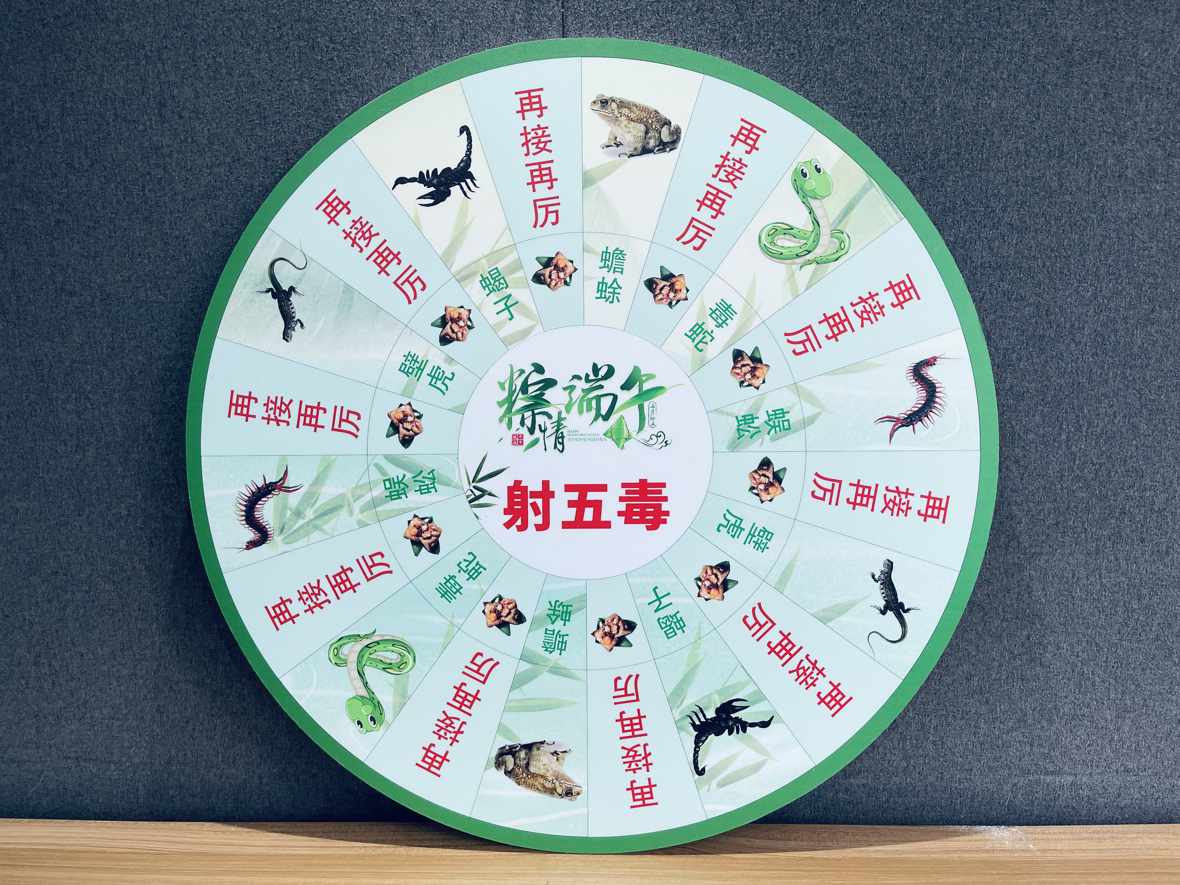 投壺、擲飛鏢、香囊DIY、非遺手工制作等趣味活動輪番上演,深受大家的喜愛,激發了和仁科技小伙伴們廣泛的參與熱情。根據傳統民俗和民間流傳,蝎、蜈蚣、壁虎、蟾蜍、毒蛇被稱為“五毒”,端午節這一天又被民間稱作為“五毒日”,為了預防五毒之害,現場活動中印畫這五種毒物,大家屏氣凝神、投擲飛鏢,以驅除“五毒”防病害。