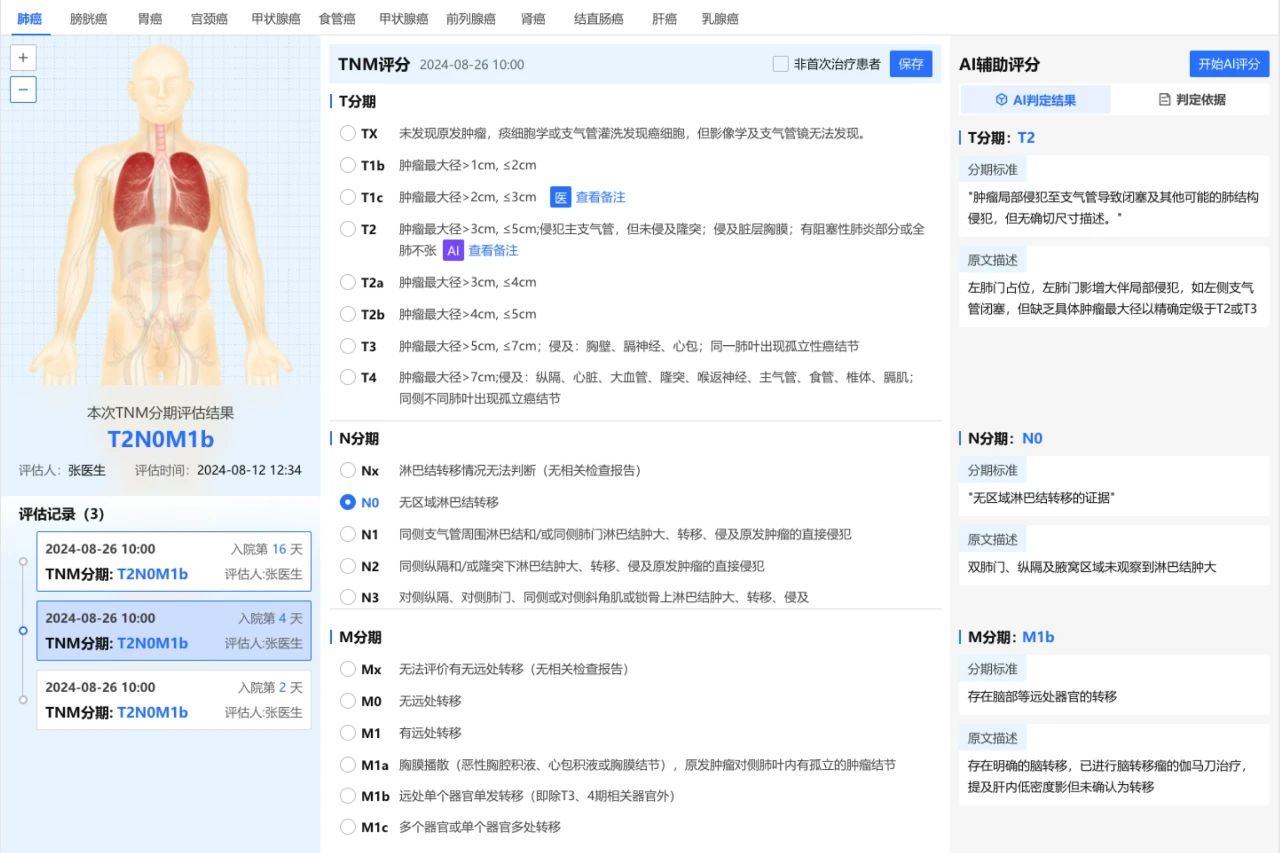 例如,和仁科技與醫院合作開發的基于大語言模型的TNM自動分期系統,通過多智能體框架,將臨床專家共識與大語言模型的能力無縫整合進HIS系統。該系統自動分析患者報告并提供TNM分期診斷建議,并完全嵌入住院醫生站,實現在日常醫療流程中“隱形”應用,減少人工輸入和復雜操作,極大提升了臨床效率。
